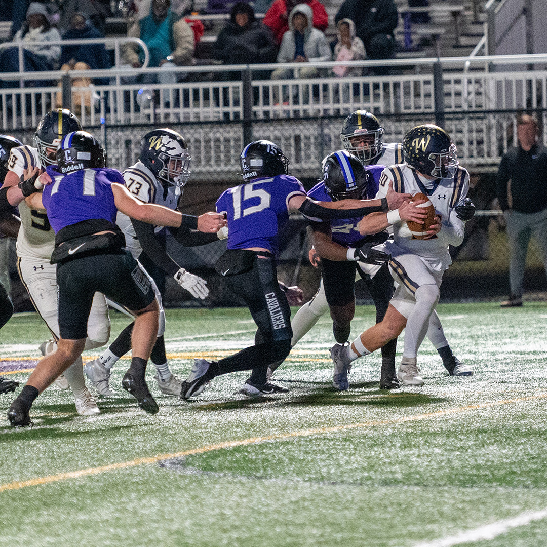 Whitefield Academy didn’t have a way to slow Calvary’s offense, which didn’t punt until just under 10 minutes were left in the fourth quarter. And the defense got the ball right back on second-and-8 when the Cavaliers’ Shawn Williams returned an interception to the WolfPack 25 with 8:43 remaining.