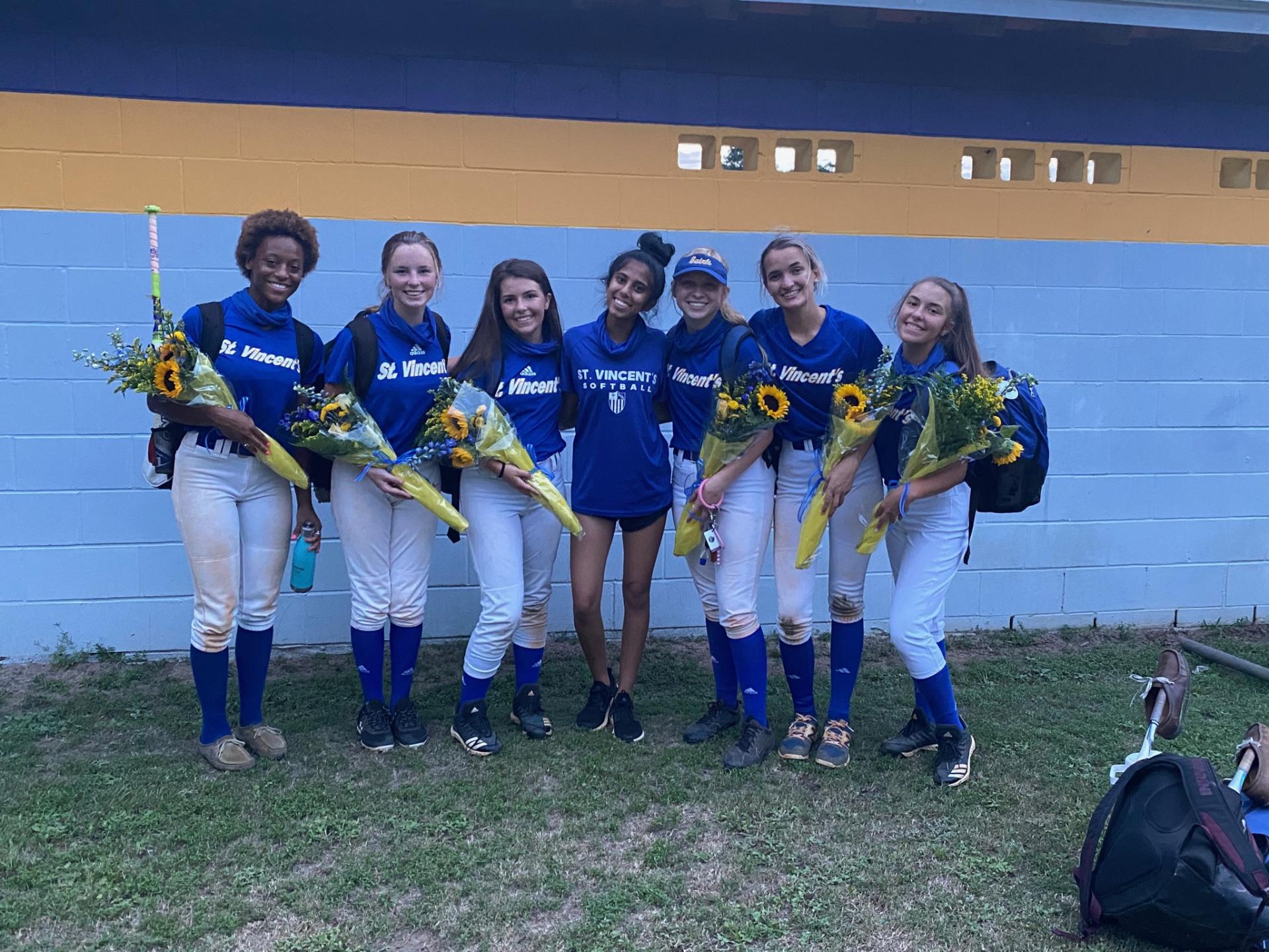 St. Vincent’s traveled to Jenkins Athletic Club for an early non-region contest and it was Calvary Day School’s senior night. For all seniors from both teams a special night was in store at the end of the game. Usually the tradition is to hold senior night on your last home game of the season. We all remember that the Class of 2020 spring athletes had their senior night stolen because of the COVID-19 pandemic and turned senior night into a virtual ceremony. Calvary Day School's softball program did not want this to happen to the Class of 2021.