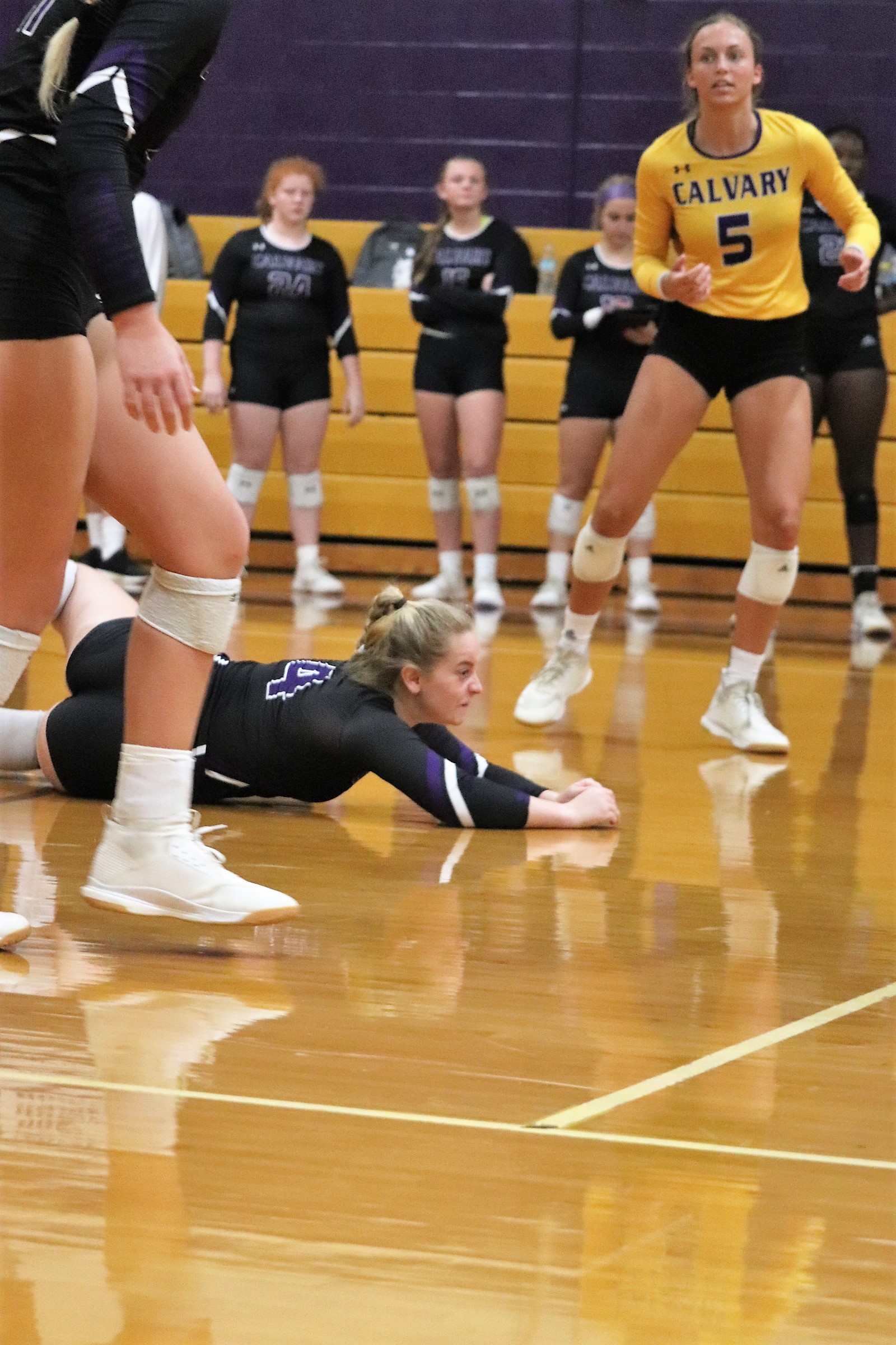 kills with three of each for the night. Senior Alana White had a great serving night with eight aces over the Hornets, and freshman, Emmy Nash, had five. The Cavs had four blocks, two of which were senior, Payton Graham, and the other two from juniors, Megan Halford and Olivia Dusterdiek. The win for Calvary improved their overall record to 7-6 and 1-1 in region play going into another big region match on Tuesday, September 15th against region opponent St. Vincent. Both teams are tied for second place in region play.
