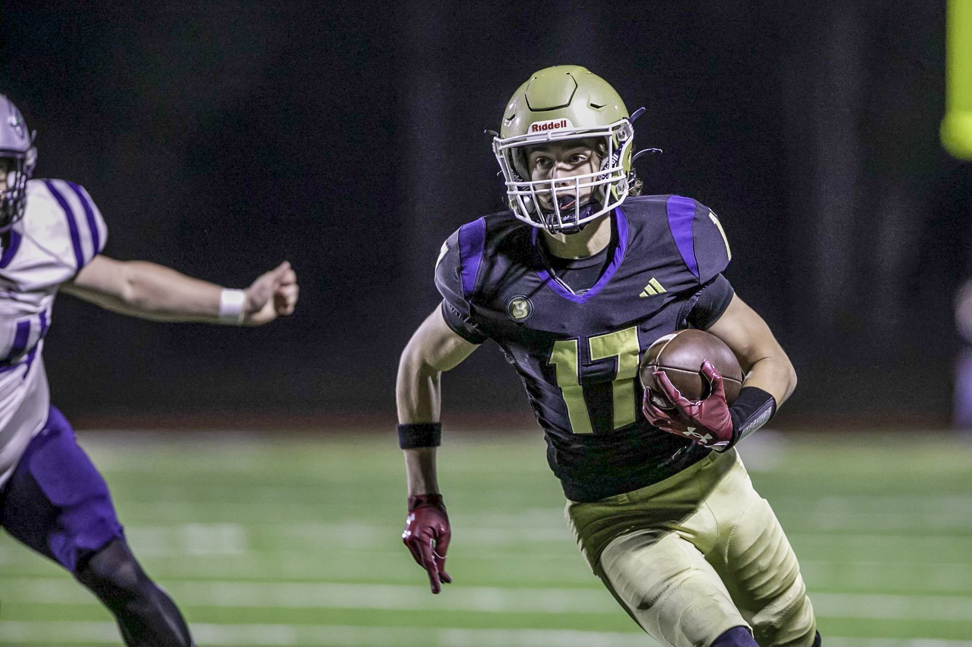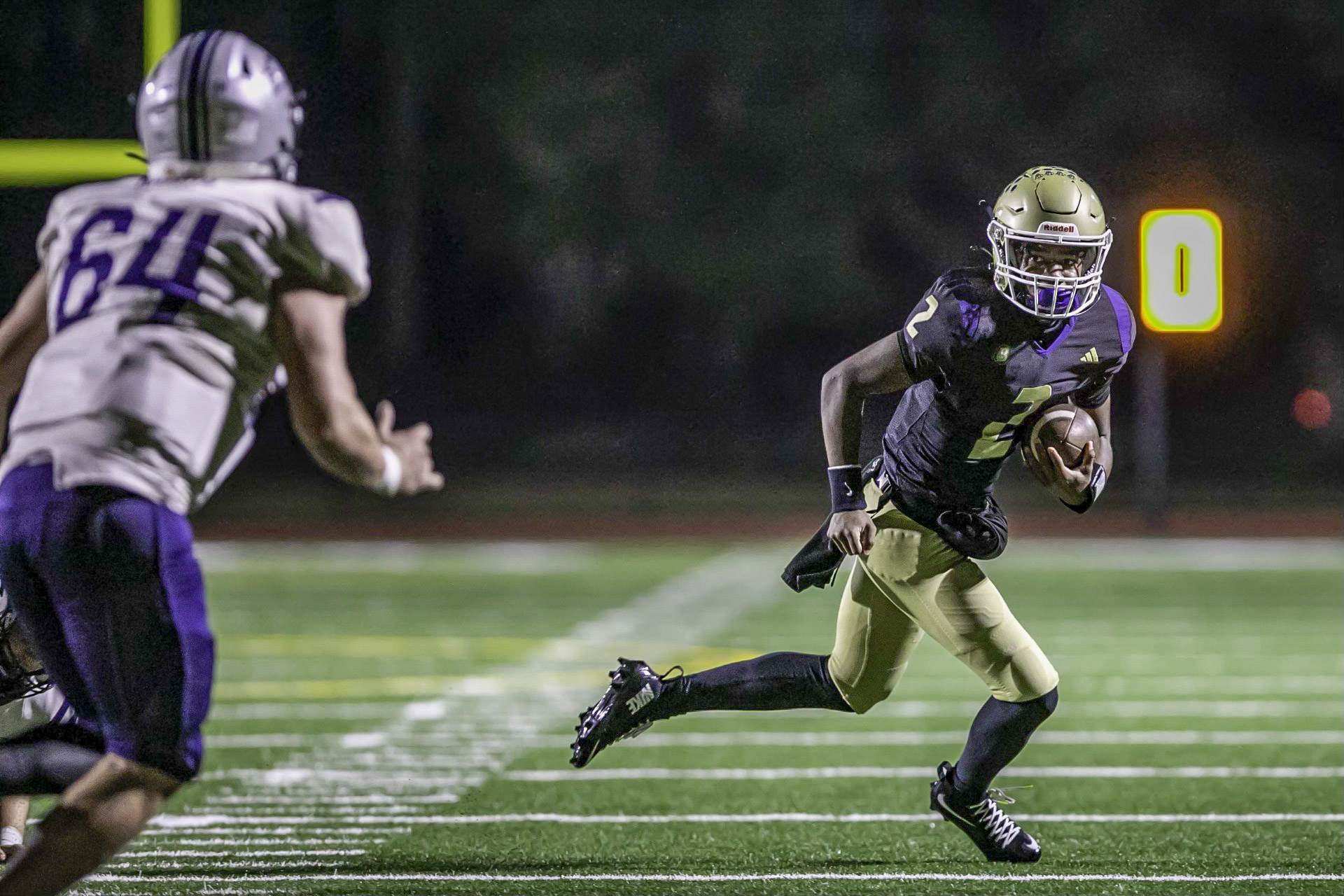 Bethesda quarterback Jordan Turner (2) eyeing Greenwood defender. Turner said the team’s offseason work and chemistry helped them return to the championship game. Courtesy RDP Productions/Kyunnie Shuman.