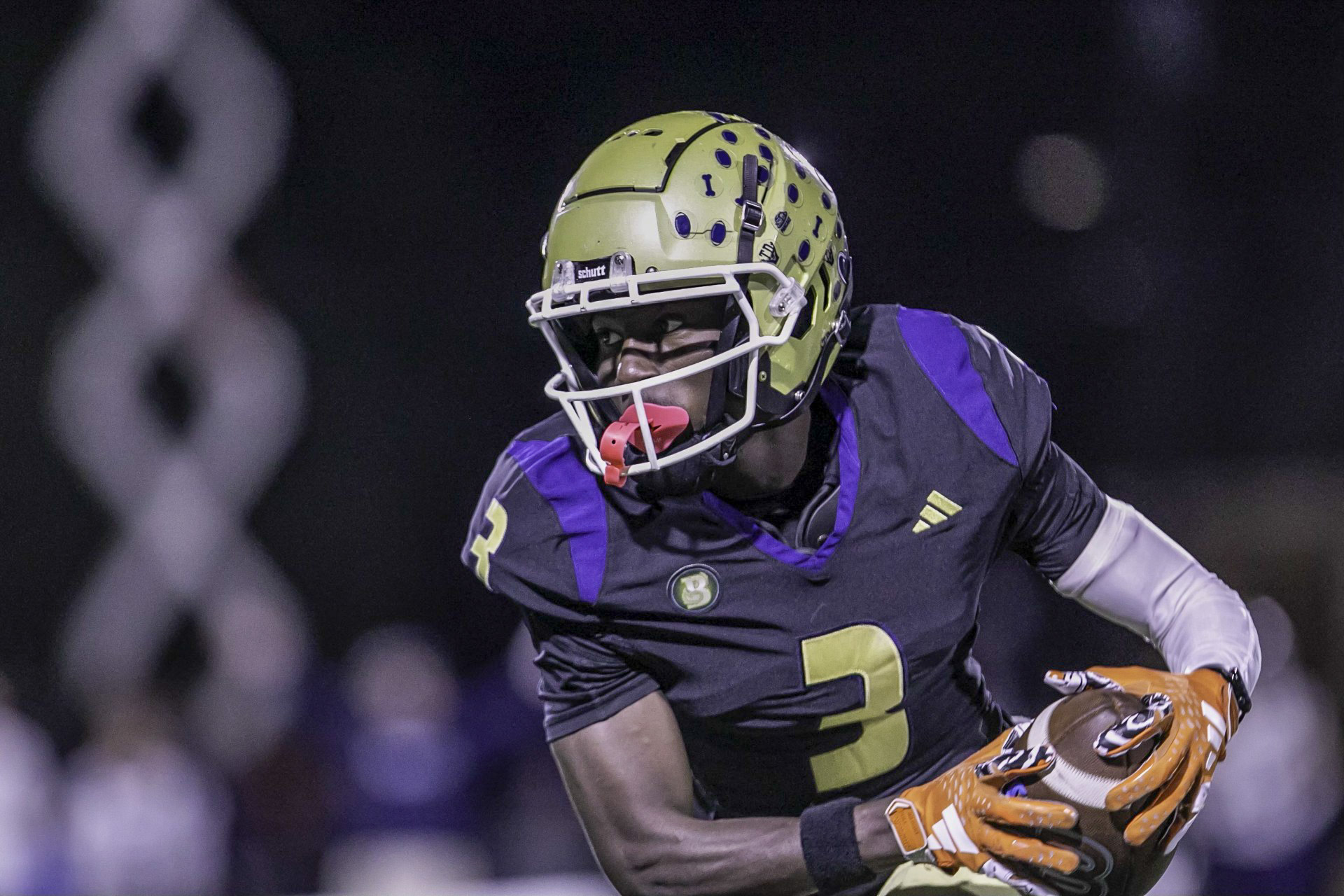 Bethesda Academy senior Ralo Wesley (3) turns upfield after a catch, one of several big-play moments that fueled the Blazers’ fast 24–0 start in their 32–14 semifinal win. Courtesy RDP Productions/Kyunnie Shuman.