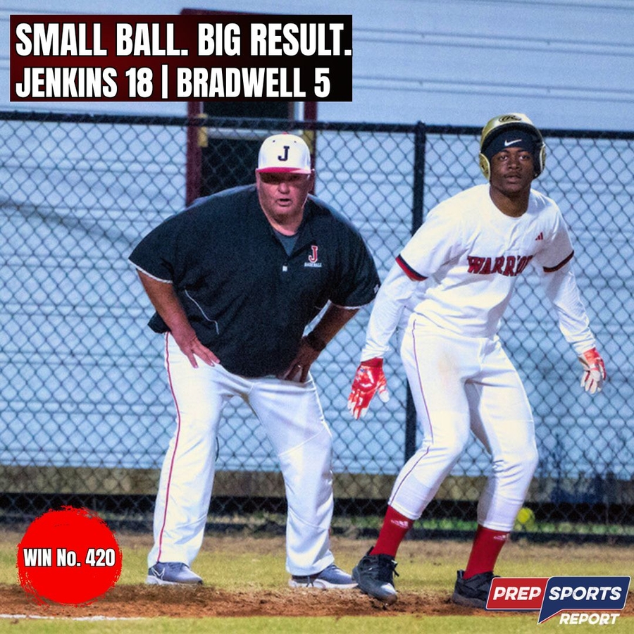 The overall result was Jenkins’ 18-5 win in five innings by mercy rule over Bradwell Institute at Terry Webb Field. The Warriors improved to 1-1 this season on a cold February evening, and the victory was the 420th in Gaspin’s head coaching career that spans nearly 30 years at four high schools, including three separate stints at Jenkins.