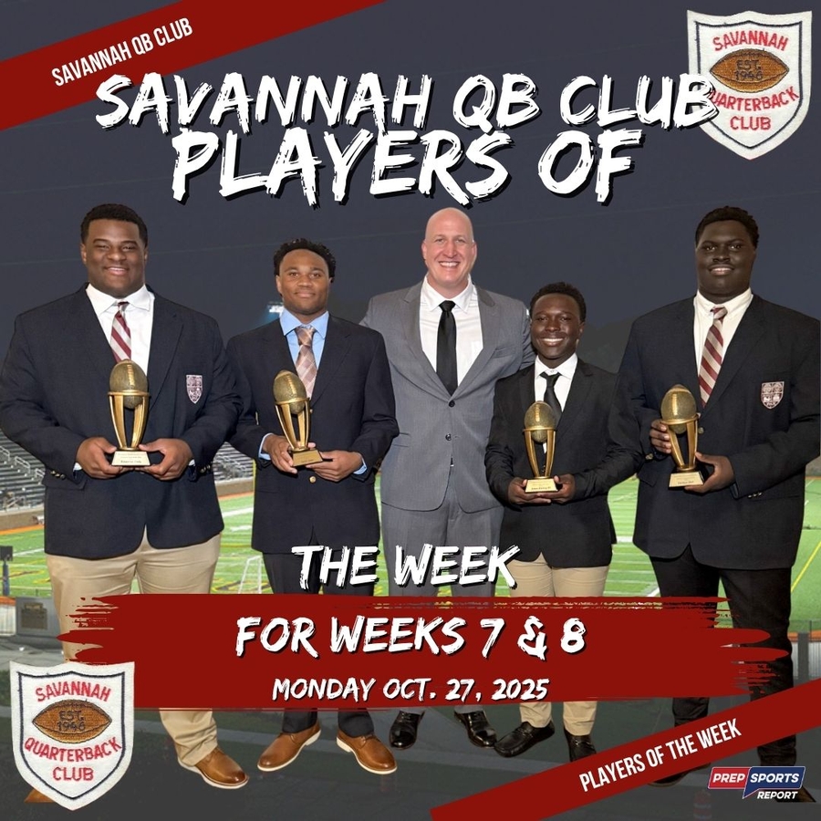 The Savannah Quarterback Club handed off Week 9 high school football trophies to two local players during their weekly Monday meeting in Savannah, Georgia, on October 23, 2023.