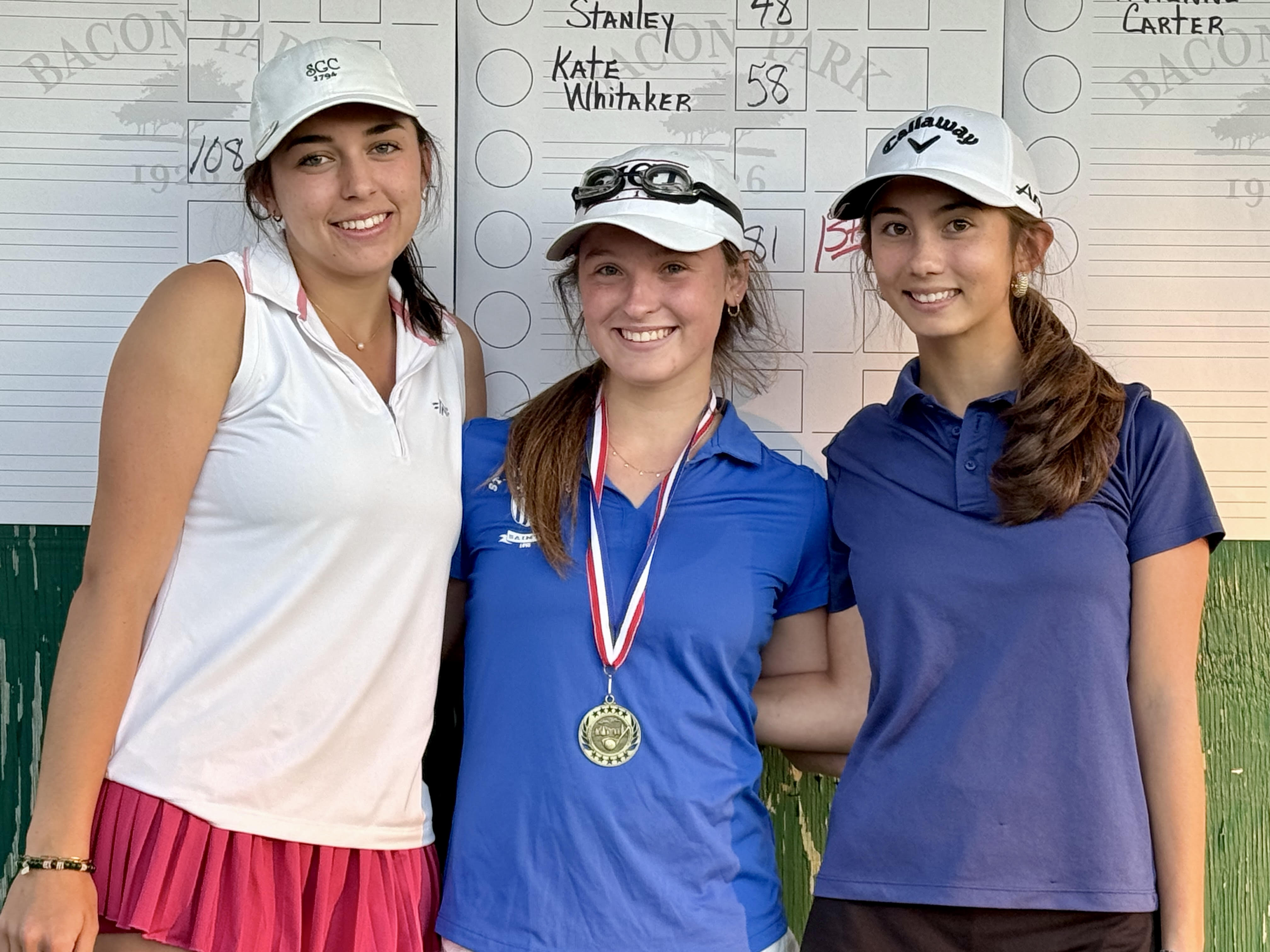 In the girls' championship, St. Vincent's Academy senior Ainsley Sheffield delivered a score of even-par 35 on Bacon Park's first nine to win the individual low medalist and propel the Saints to a team title.