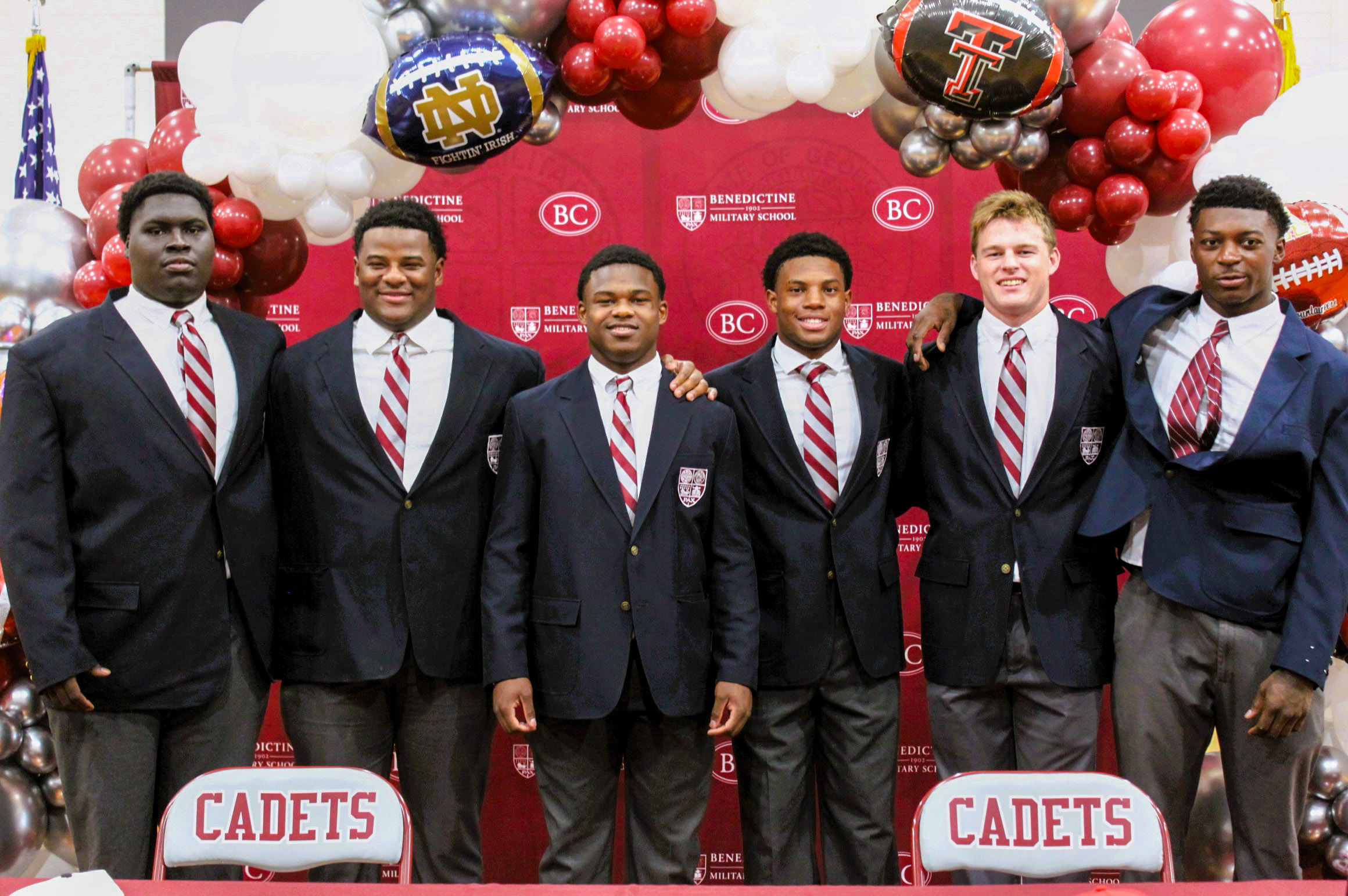 Congratulations to six Benedictine Military School Cadets who signed National Letters of Intent to play NCAA Division I football today: Stephen Cannon (Texas Tech), Kam Cody (Clemson), Chris “Bubba” Frazier (Notre Dame), LaDamion Guyton (Texas Tech), Carlton “Caiou” Hall (Liberty), and Micah Williams (Appalachian State).