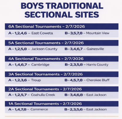 The GHSA Traditional Wrestling State sectionals will be held at various sites. Here is the schedule as psoted on GHSA website.
