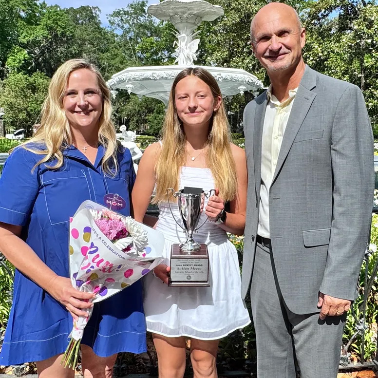 Nominated by Coach and AD Jamie Salas, Sutton Meece is the definition of versatility. A five-sport athlete—the first in school history—Meece has made her mark in cross country, volleyball, basketball, track, and soccer while maintaining a 97.8 GPA and making the High Honor Roll. She held a lead role in two school plays, volunteered with the Humane Society and Savannah Children's Theatre, and helped younger students as a Book Buddy. She'll attend Savannah Arts Academy next year.